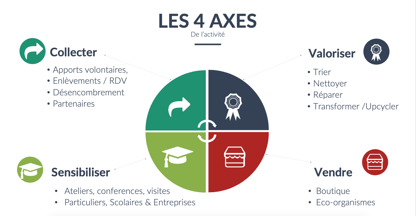 La collecte, le tri, la valorisation et la vente dans notre boutique.